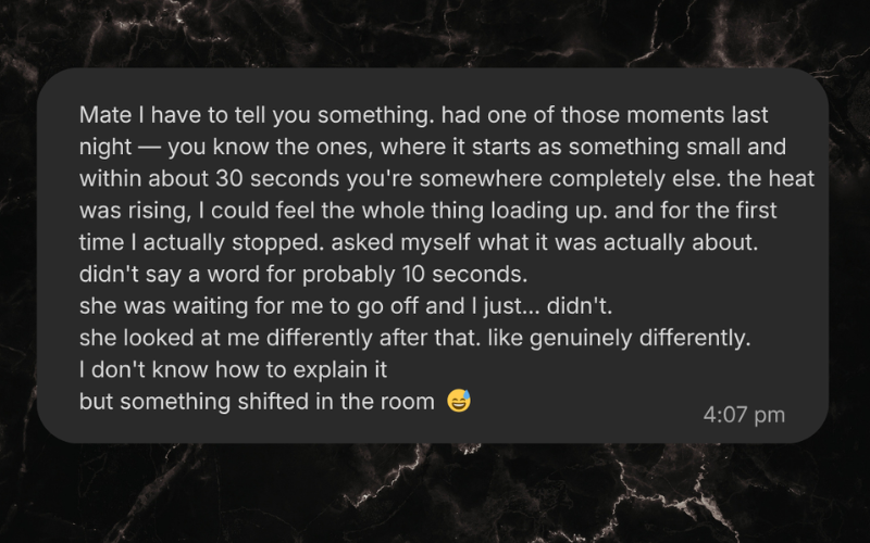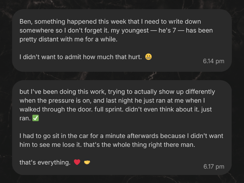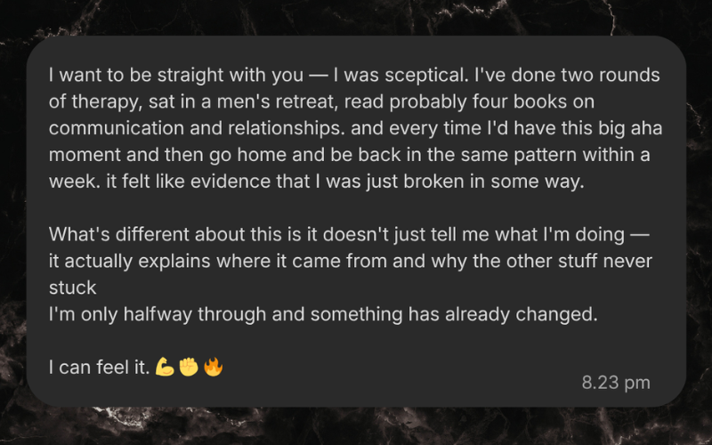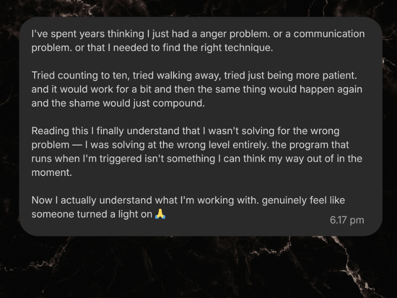 He is not a levitating monk. He still gets triggered. He still catches himself three moves into the old pattern sometimes.